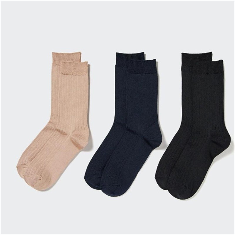 These socks are made from a fine-needle ribbed fabric with a glossy finish. The fabric is textured for a svelte look and can be worn with pumps and loafers.